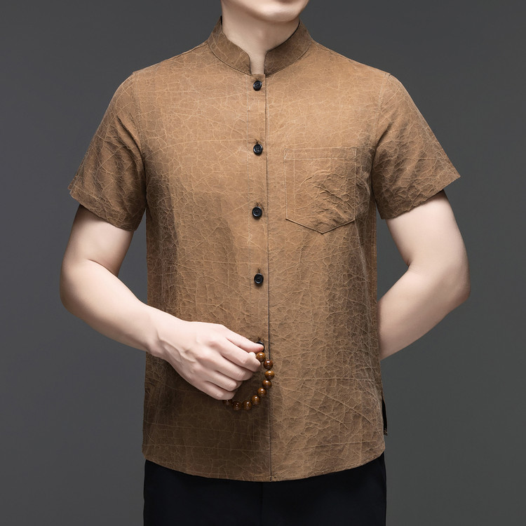 罗蒙衬衫&51537夏季新款莫代尔亚麻短袖衬衫